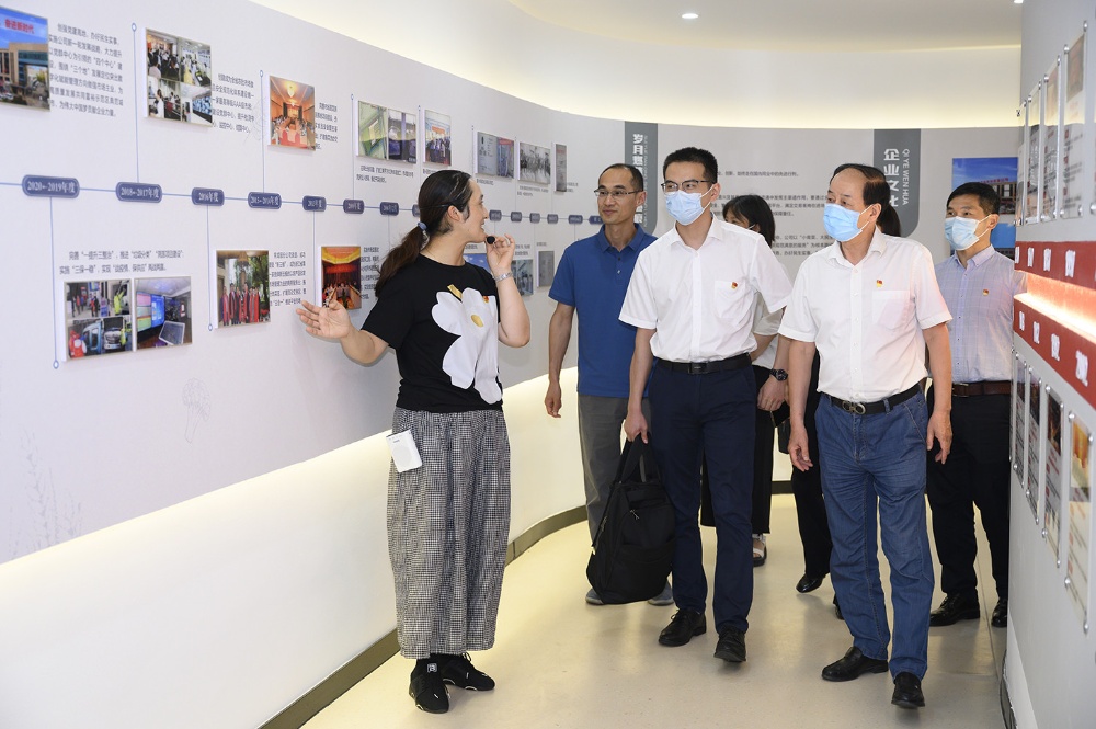 指導檢查組領(lǐng)導一行參觀(guān)公司新建成的黨群服務(wù)中心、食品安全檢驗檢測中心,不時(shí)駐足并詢(xún)問(wèn)公司黨建歷史和企業(yè)發(fā)展歷程等。